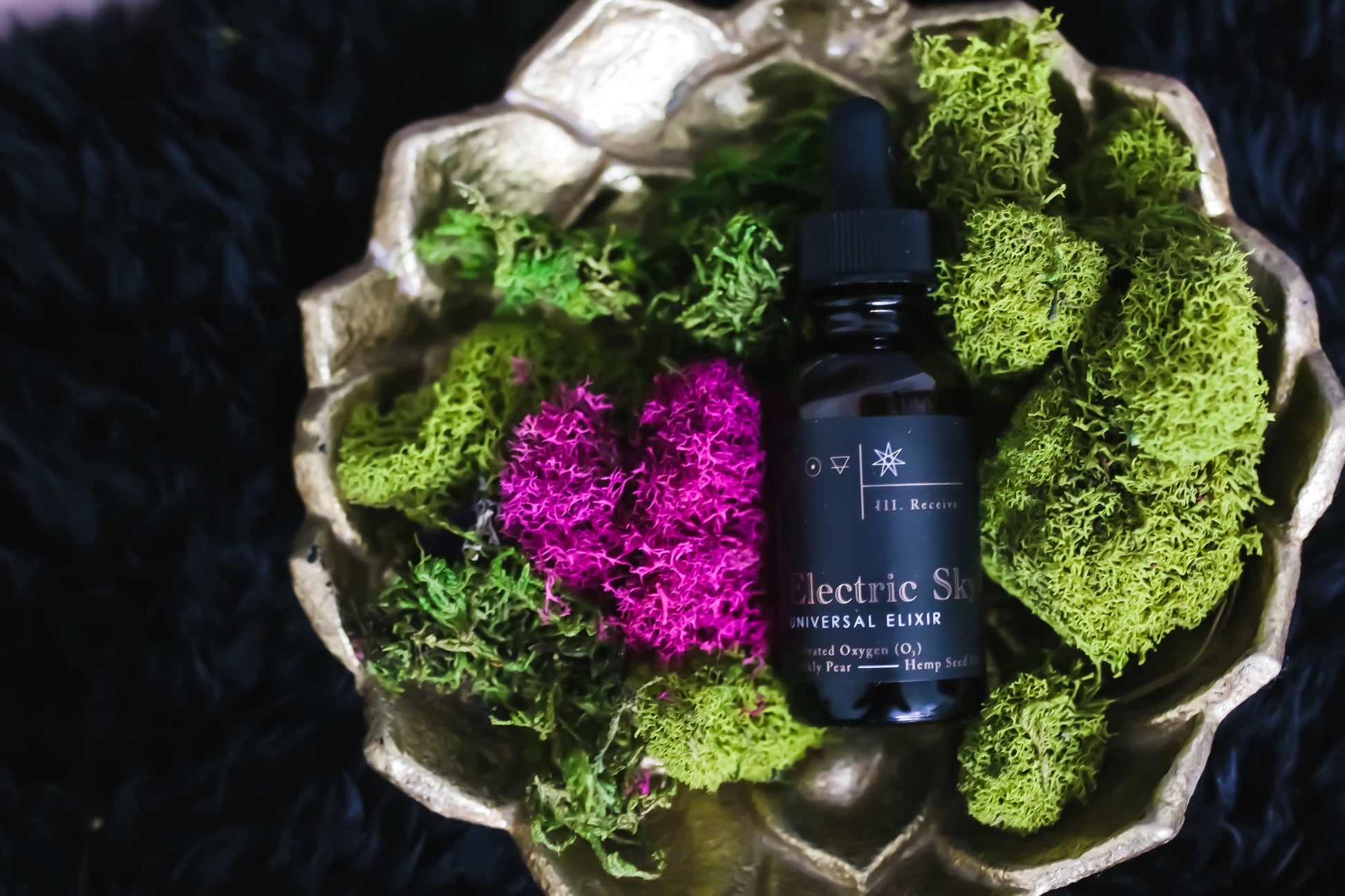 Loaded with activated oxygen (ozone / O3) and unlike any facial serum you’ve experienced, Electric Sky increases cellular function and micro-circulation. It literally breathes new life into your skin with every application, clearing stagnation and dullness. Ozone infused hemp seed oil cocoons the skin, shielding it from environmental aggressors. Just a few drops of this heavenly elixir morning and night is all that's needed to reclaim youthful skin that glows with life.