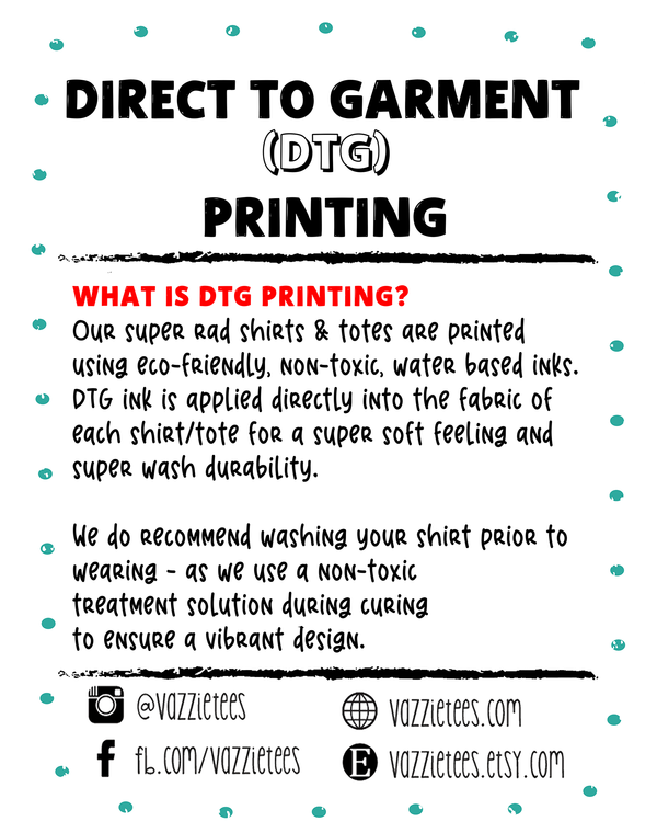 This design is printed using Direct to Garment printers - eco-friendly, water based ink. All shirts are unisex fit. Very lightweight in touch, but super soft!